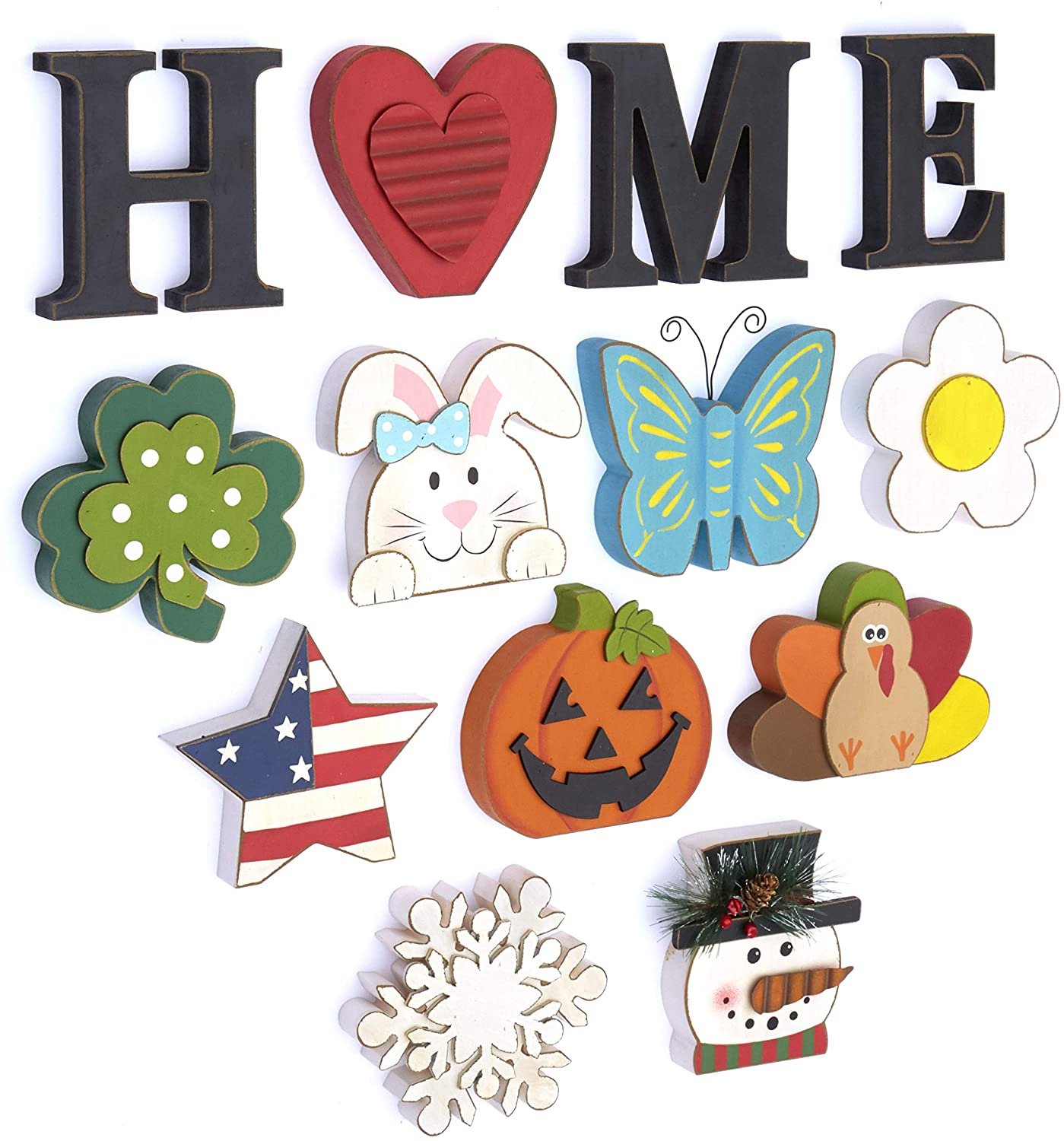 The Lakeside Collection Wooden Decorative Home Signs with Letters, Pumpkin, Turkey, Snowflake – 13 Pc